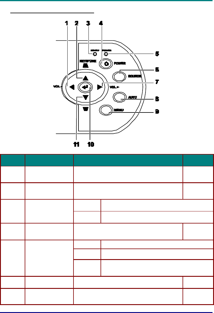 4. Power Turns the projector on or off (main power switch must